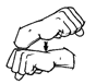 This mimics the action of hammering, the repetition shows that there is a purpose to the activity, and the number of repetitions is left to the speaker. There is also a connotation of pain in the mutual shocks that flesh is heir to. The opposed poles of active / passive, “dominant” / subservient, subject / object are at work. The French Sign Language for unemployment[25] starts very much like “work” with crossed wrists, but the hands move apart and come to rest on the hips.