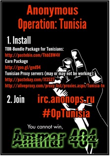 Figure 4: Graphic of “Operation Tunisia” containing detailed instructions on how to install the care package and join the IRC network on #OpTunisia.[23]