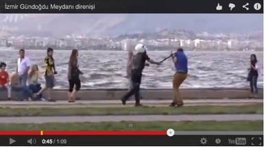 Figure 5: Screenshot of the Turkey riots. Visual evidence of police brutality, distributed by Anonymous and other social movement groups via Twitter and YouTube, and elsewhere.[30]