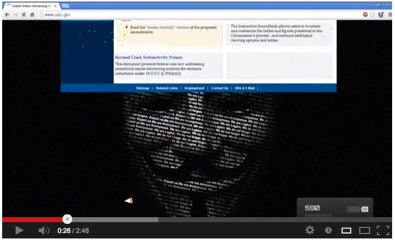 Figure 6: Screenshot of the hacked website of the United States Sentencing Commission, including the Anonymous YouTube video “Operation Last Resort” (first hack).[38]